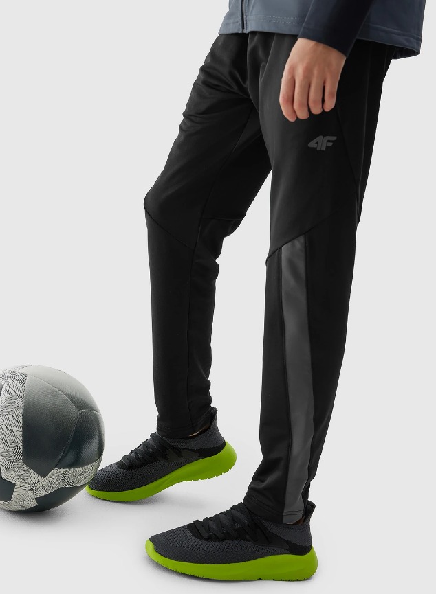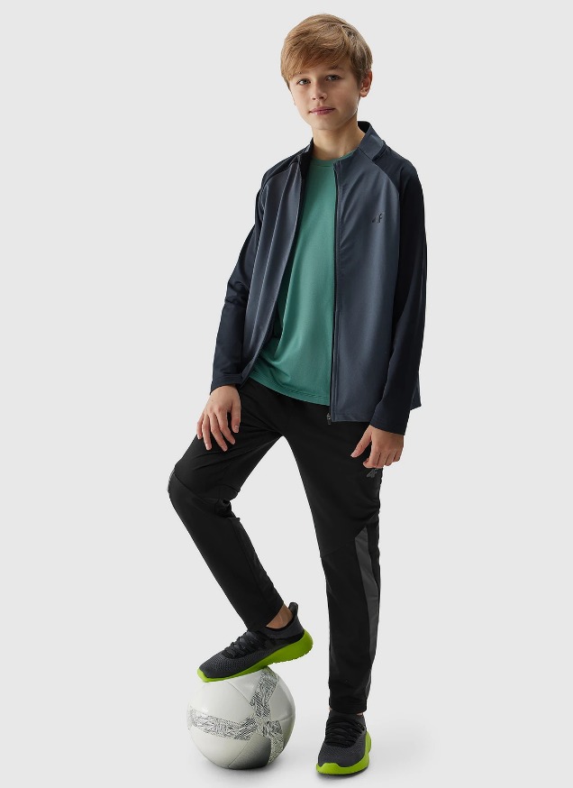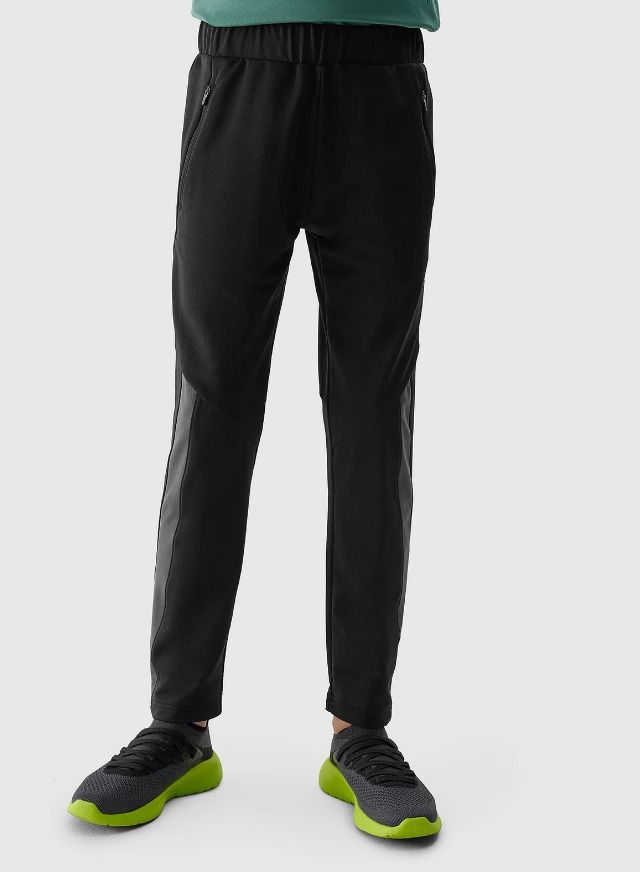The tracksuit bottoms are made from synthetic fabric for durability and easy care. Thanks to the addition of elastane (10%), they are slightly stretchy and fit comfortably on the figure. The boy's training trousers have quick-drying fibres with 4FDry technology to wick moisture away from the body. On the sides, there are 2 zipped pockets. Elasticated waist with internal adjustable straps.