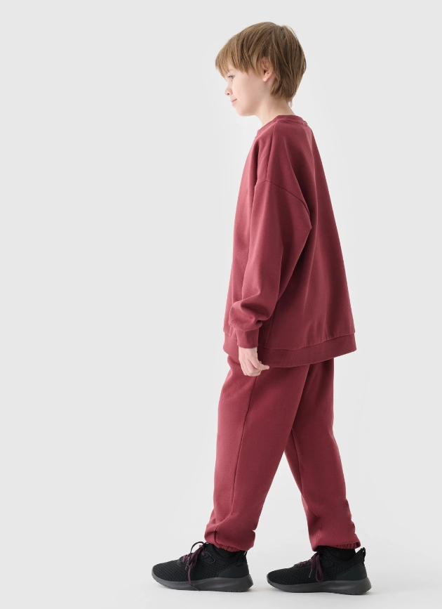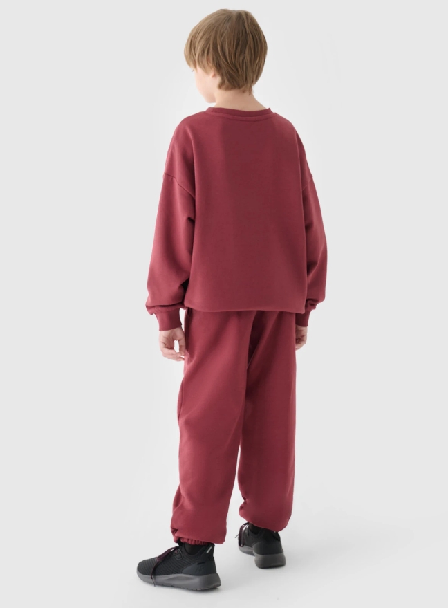 The children's sweatpants are made of 80% cotton, so they are soft, durable and pleasant to the touch. Thanks to the addition of polyester (20%), the material retains its shape and is resistant to wear even during many seasons.The brushed inner part guarantees extra warmth, making the pants the perfect choice for colder days. There are 2 open pockets on the sides. Elastic waistband with external drawstring adjustment.