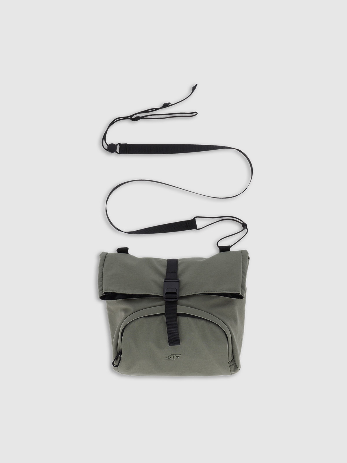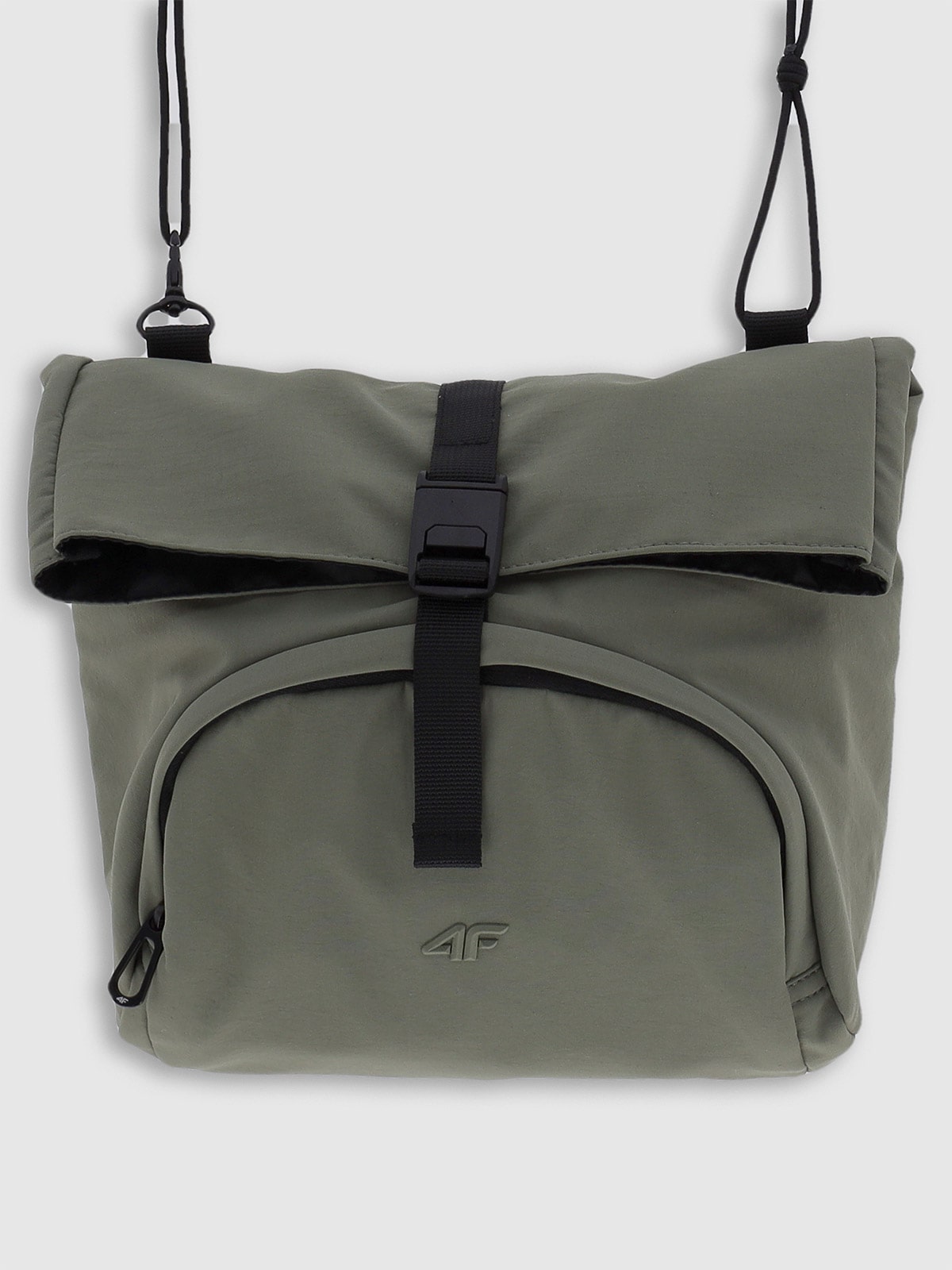 The bag has a removable shoulder strap with adjustable length. Main pocket with buckle closure. There is a zipper pocket on the front.