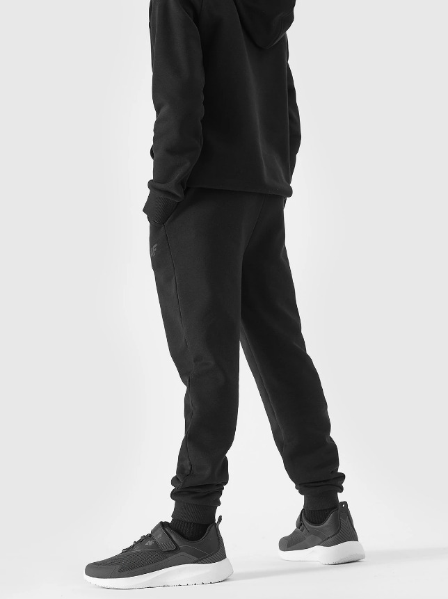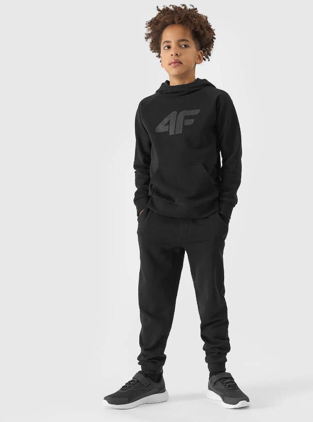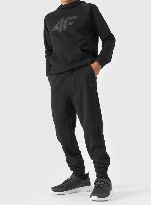 Zēnu sporta bikses ir ideāli piemērotas gan ikdienišķam, gan sportiskam ikdienas stilam. Tiem ir parasts piegriezums, kas ērti pieguļ figūrai, un konusveida kājas, kuras ir apdarinātas ar elastīgu apakšmalu. Franču frotē adījums ir gluds vienā pusē, un no otras puses ir redzams cilpas pinums. Adījums šajā audumā ir mīkstāks, plūstošāks un plānāks uz tausti. 4F sporta bikses zēniem ir izgatavotas no vidēja svara 280 g/m2 trikotāžas, kas padara tās mīkstākas un elpojošākas. Izgatavotas no 80% kokvilnas, padarot tās mīkstas, izturīgas un ērti valkājamas. Pievienotais poliesters (20%) nozīmē, ka audums saglabā griezumu un ir izturīgs daudzu sezonu garumā.mBiksēm nav oderes, tāpēc tās ir vieglākas un piemērotas siltākām dienām.