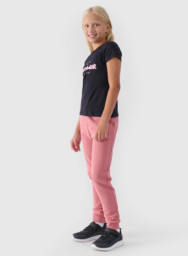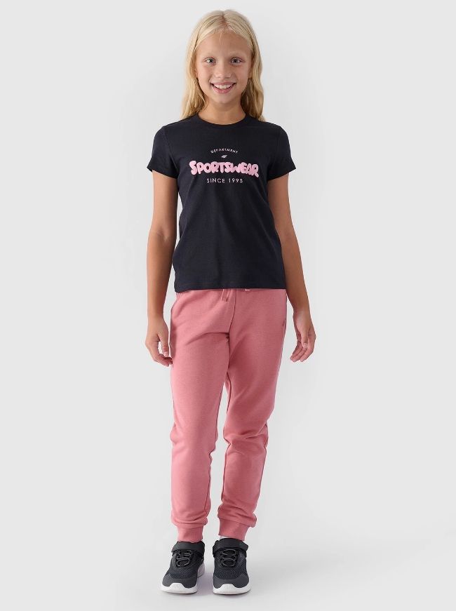 Meiteņu sporta bikses 4F ir izgatavotas 80% no kokvilnas, tāpēc ir mīkstas, izturīgas un pieskārienā patīkamas. Pateicoties poliestera piedevai (20%) materiāls saglabā fasonu un ir izturīgs pret nodilumu pat daudzu sezonu laikā. Biksēm nav oderes, tāpēc ir vieglākas un piemērojamas siltākām dienām. Sānos ir 2 atvērtas kabatas. Elastīga jostasvieta ar ārēju auklas regulēšanu.