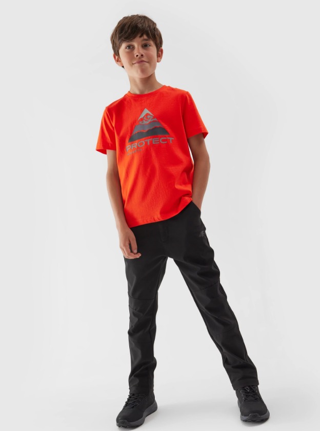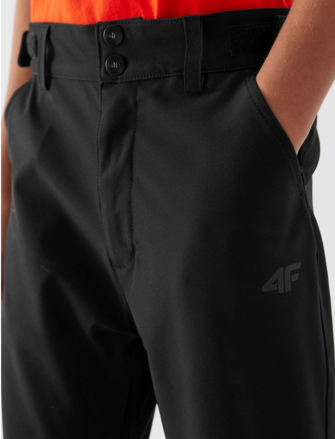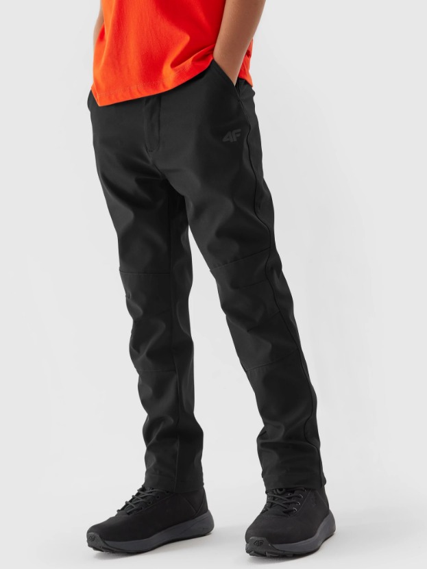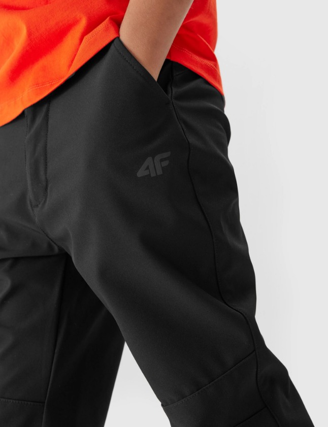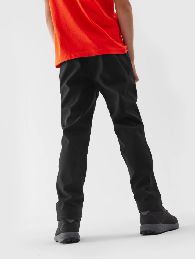 Zēnu trekinga softshell bikses membrāna 5000, kas izgatavotas no divslāņu vēja necaurlaidīga softshell auduma ar iekšēju elpojošu sietu un gludu ārējo virsmu.