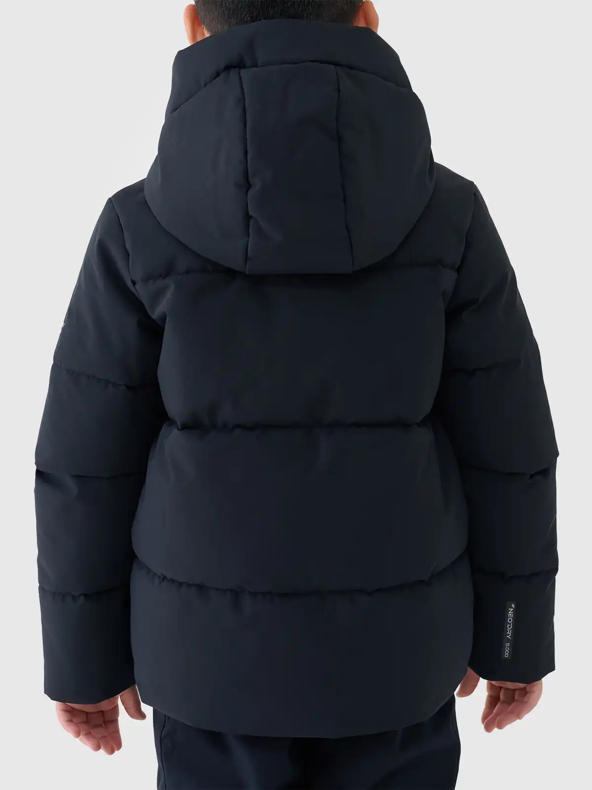 Zēnu slēpošanas jaka ar kapuci tehnoloģiski pielāgota sportam, mērenām aktivitātēm un ikdienas lietošanai.