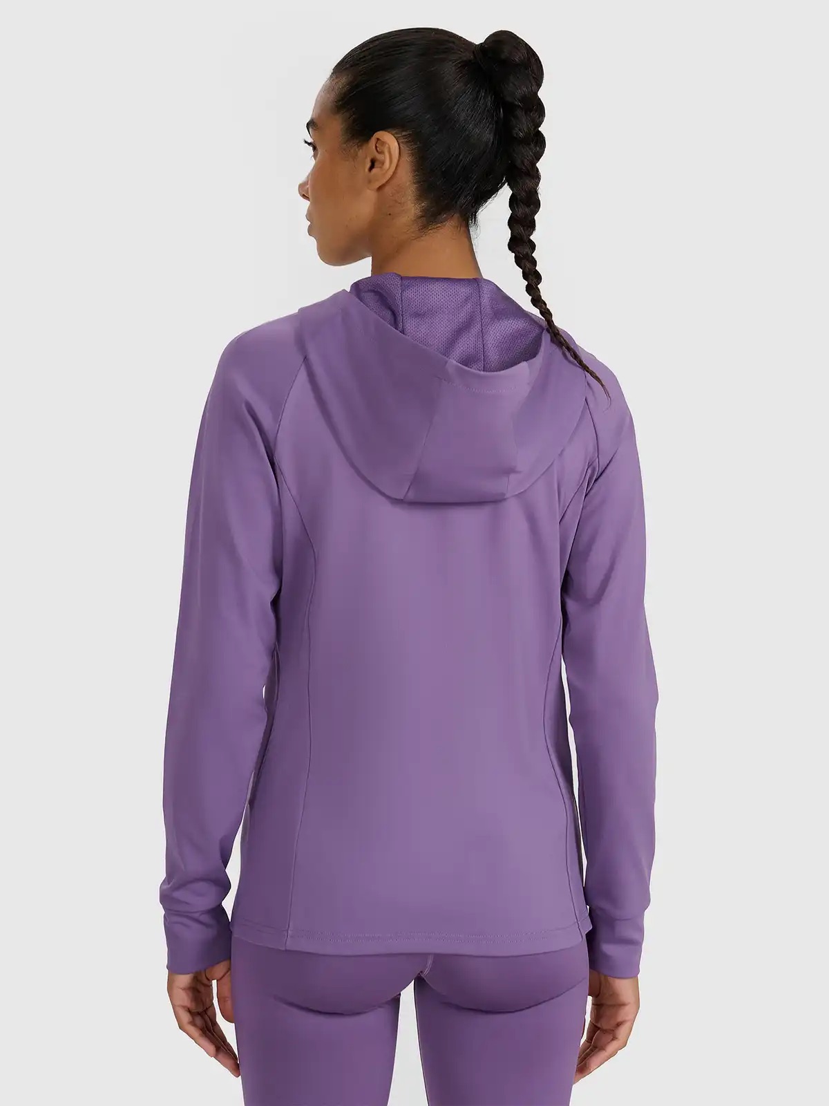Sieviešu sporta jaka ir lieliska izvēle aktīvām sievietēm, kuras novērtē komfortu un funkcionalitāti. Pateicoties elastīgajam adījumam, sporta krekls lieliski pielāgojas figūrai, nodrošinot pilnīgu kustību brīvību dažādu treniņu veidu laikā. Matētais fasons piedāvā papildu siltumu, padarot to par lielisku pavadoni vēsākās dienās. Ātri žūstošās šķiedras 4FDry tehnoloģijā efektīvi izvada mitrumu, nodrošinot sausuma sajūtu. Integrētā kapuce un reglāna piedurknes uzsver sportisko raksturu, savukārt praktiskas sānu kabatas un ērts pilna garuma aizdares rāvējslēdzējs papildina funkcionalitāti. Sieviešu sporta jaka ir mīksta, elpojoša un viegli kopjama.