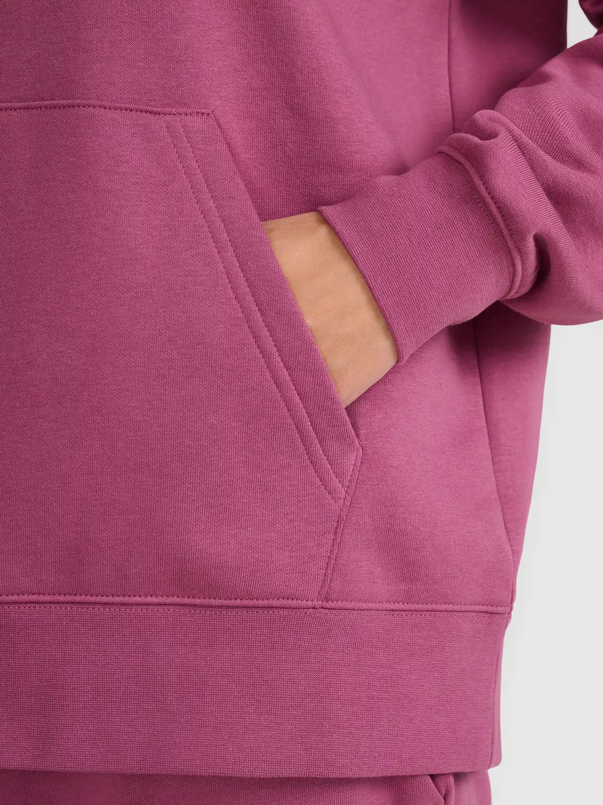 Sieviešu sporta džemperis ar kapuci ir lieliski piemērots gan ikdienas, gan sportiskam ikdienas stilam. Tam ir parasts piegriezums, kas ērti pieguļ figūrai. Franču frotē adījums ir gluds vienā pusē, un no otras puses ir redzams cilpas pinums. Adījums šajā audumā ir mīkstāks, plūstošāks un plānāks uz tausti. Izgatavots no 80% kokvilnas, padarot to mīkstu, izturīgu un patīkamu pieskarties. Pateicoties pievienotajam poliesteram (20%), audums saglabā savu formu un ir izturīgs daudzu sezonu garumā.