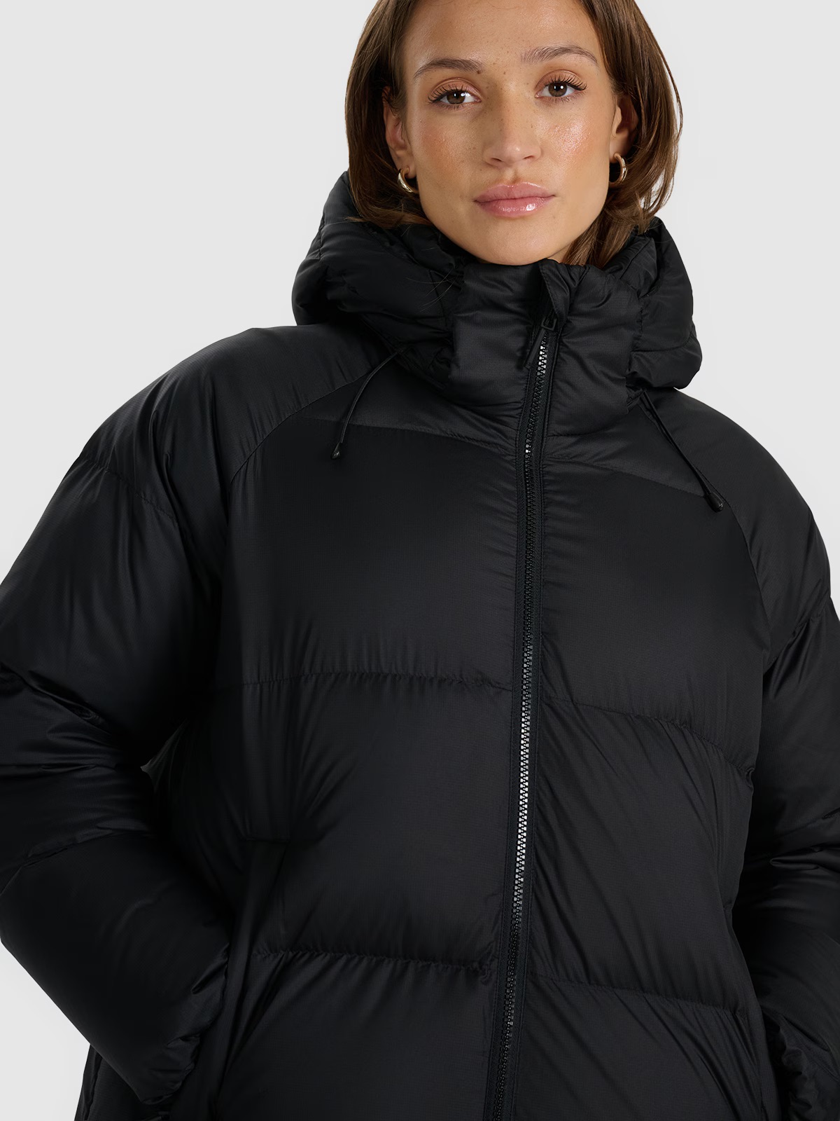 Šis sieviešu dūnu mētelis ir lieliska izvēle, ja meklējat ikdienas aizsardzību pret aukstumu un mitrumu. Pateicoties garajam oversize tipa fasonam ar garumu līdz ceļgaliem, jūs iegūstat pilnīgu komfortu un kustības brīvību pat valkājot daudzslāņu stilus.