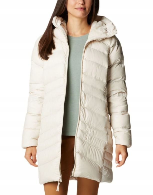 Sieviešu pusgarā virsjaka ar kapuci Autumn Park™. Atstarojoša odere un 650 pildījumu komanda, lai saglabātu siltumu visu ziemu. Slīpās un smalkās sānu kabatas ar rāvējslēdzēju rada gludu siluetu. Augsta ūdeles vilnas odere ap galvu, kaklu un ausīm palielina mājīgumu.