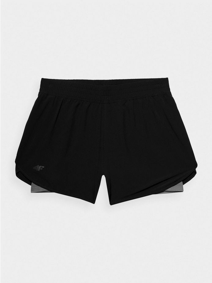 Ātri žūstoši sieviešu treniņu šorti. Sašūti no viegla elastīga materiāla. Tiem ir iekšējas pielāgotas apakšbikses, kas nodrošina papildu pārklājumu un komfortu vingrināšanas laikā. Viduklī ir gumija, lai šorti noturētu vietā. Iekšējo biksīšu sānos esam ievietojuši nelielas kabatas, kur varat paslēpt sīkus priekšmetus, piemēram, atslēgas vai telefonu. Izmantota 4FDry tehnoloģiju, kas nodrošina mitruma izvadīšanu.