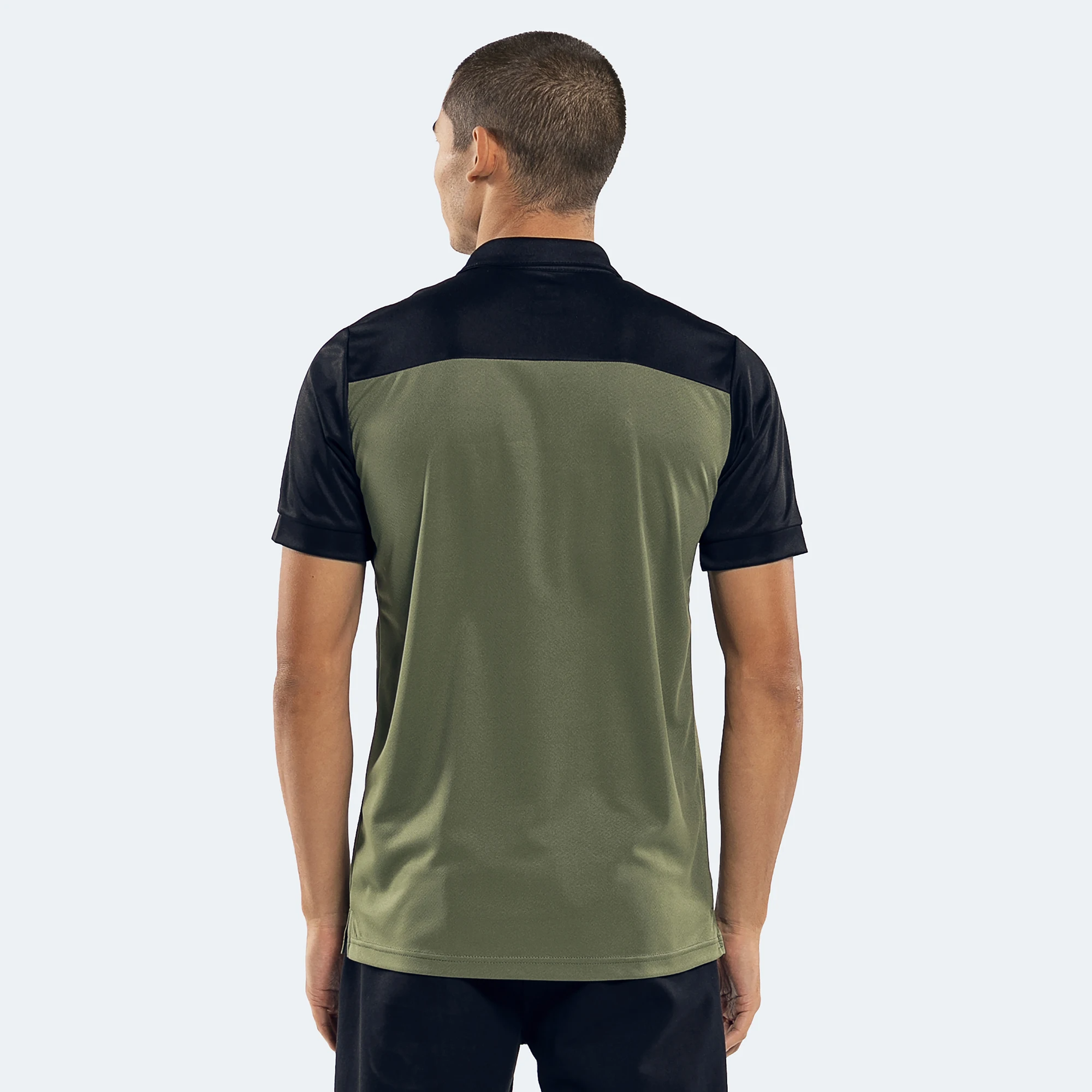 - divu krāsu polo izgatavots no diviem dažādiem audumiem,