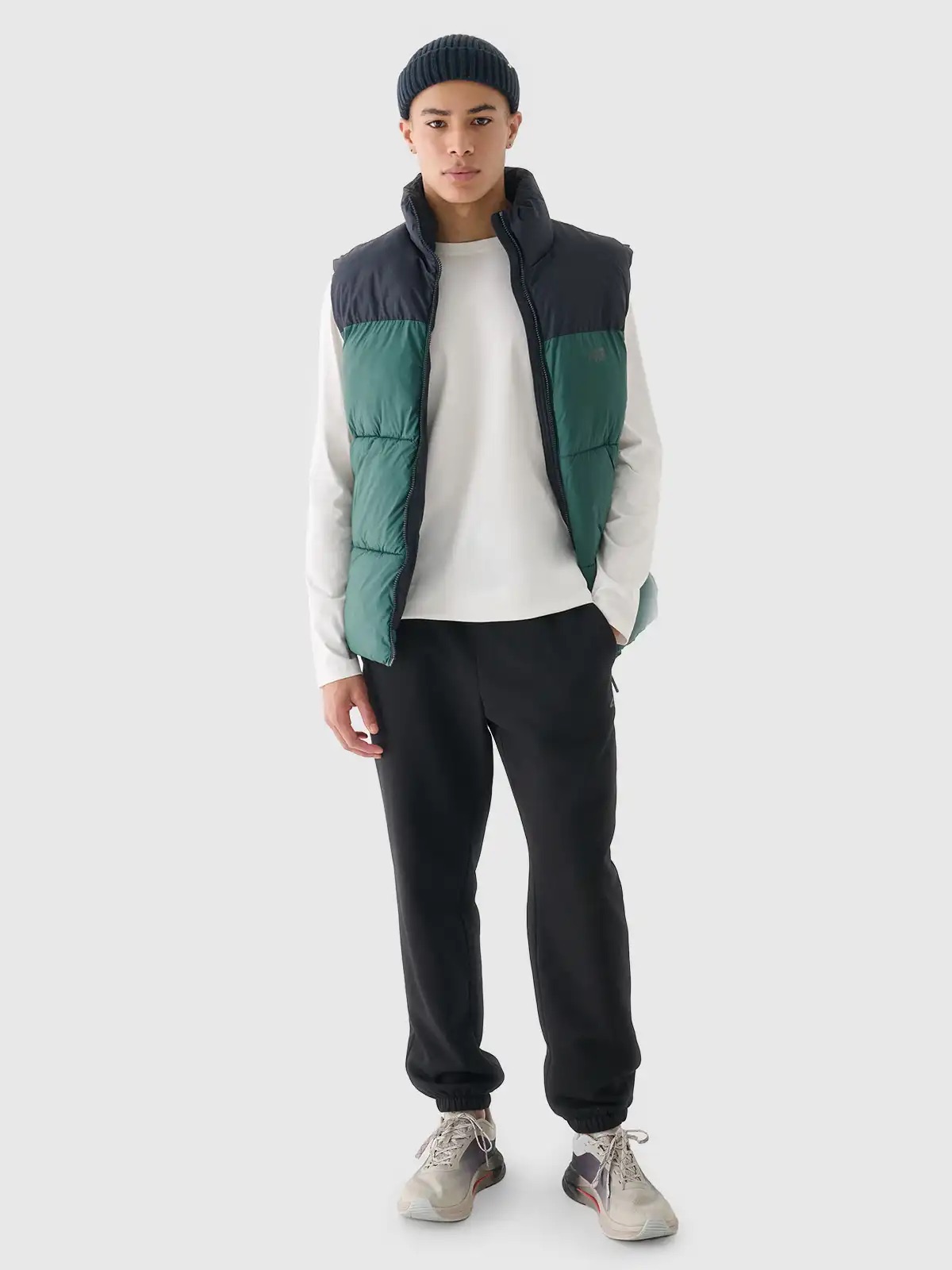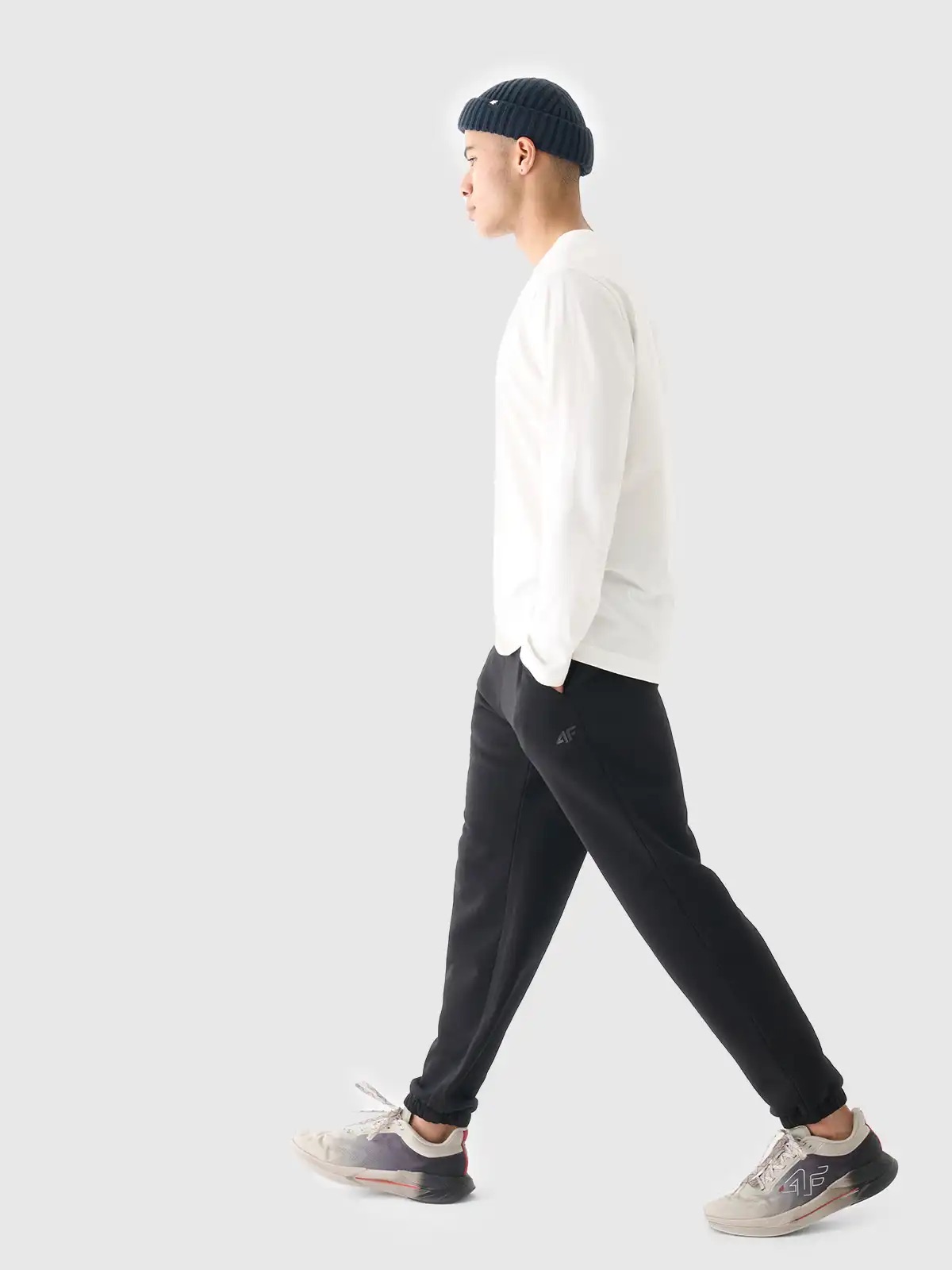 Vīriešu jogger tipa sporta bikses ir lieliski piemērotas kā elements gan casual tipa, gan sportiskam ikdienas stilam. Tās raksturo regular fasons, kas ērti pielāgojas figūrai, un sašaurinātas kājas, apdarinātas ar elastīgu gumiju. French terry sporta audums vienā pusē ir gluds, un no otras puses ir redzams cilpu pinums.