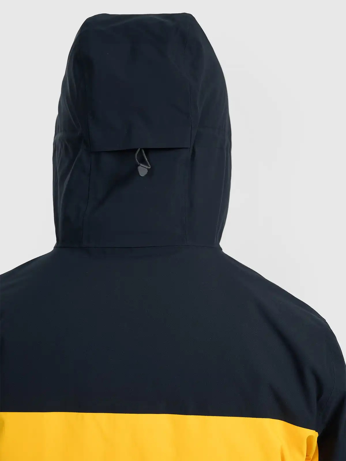 Vīriešu slēpošanas virsjakai ir kapuci ar profilētu nagu un ar apjoma un dziļuma regulēšanu. Kaklu aizsargā augsta apkakle, kas papildus pasargā no aukstuma un vēja. Piedurknes ir pabeigtas ar aprocēm ar Velcro regulēšanu. Sānos ir 2 kabatas ar rāvējslēdzēju. Savukārt iekšā ir atvērta kabata slēpošanas brillēm, izgatavota no elastīga sieta. Papildus, iekšējā kabata ar Velcro ļaus droši uzglabāt vērtīgas lietas, piemēram, tālruni. Kreisajā plecā ir neliela ski pass kabata ar rāvējslēdzēju, kurā var ievietot slēpošanas karti vai citus sīkumus. Vīriešu slēpošanas jaka ir aiztaisīta ar vienvirziena galveno rāvējslēdzēju ar iekšējo pretvēja atloku, kas ierobežo aukstuma iekļūšanu jakā. Apakšdaļas apkārtmēru var regulēt, izmantojot tuneļveida savilcēju ar blokādēm.