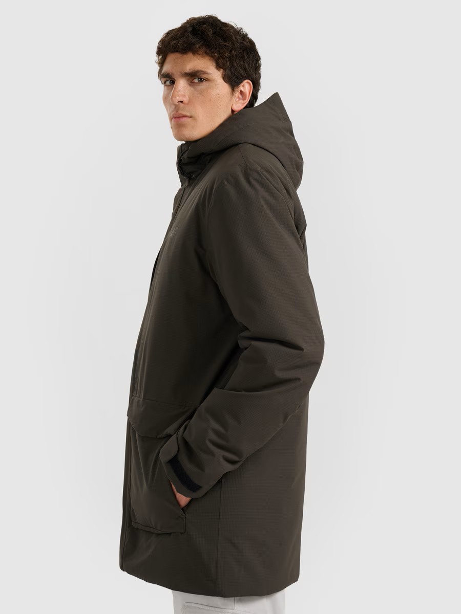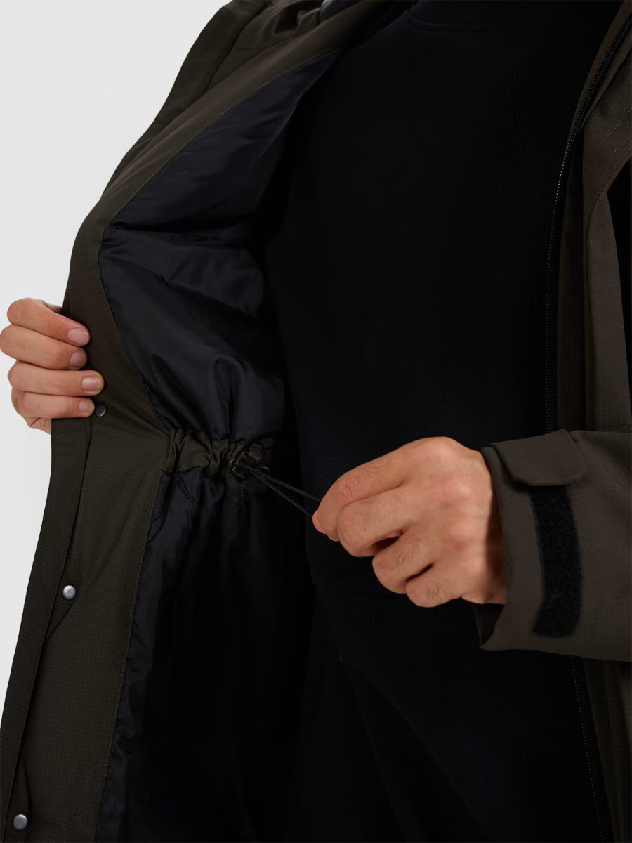 Fasons regular un garums līdz ceļiem nodrošina komfortu un labāku aizsardzību pret aukstumu. Integrētā kapuce ar regulēšanu un augsta apkakle palielina aizsardzību nelabvēlīgos laika apstākļos.