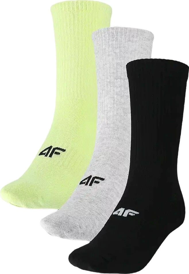 Носки 4F – синоним комфорта и универсальности. Изготовленные из высококачественной смеси хлопка, полиамида и эластана, они обеспечивают оптимальную воздухопроницаемость и идеально облегают стопу. Плоский шов на носке обеспечивает превосходный комфорт, исключая риск натирания. Эластичная ребристая манжета надежно фиксирует носки, не сдавливая их. Логотип 4F подчеркивает их современный характер, делая их стильным повседневным аксессуаром. В комплекте три пары.