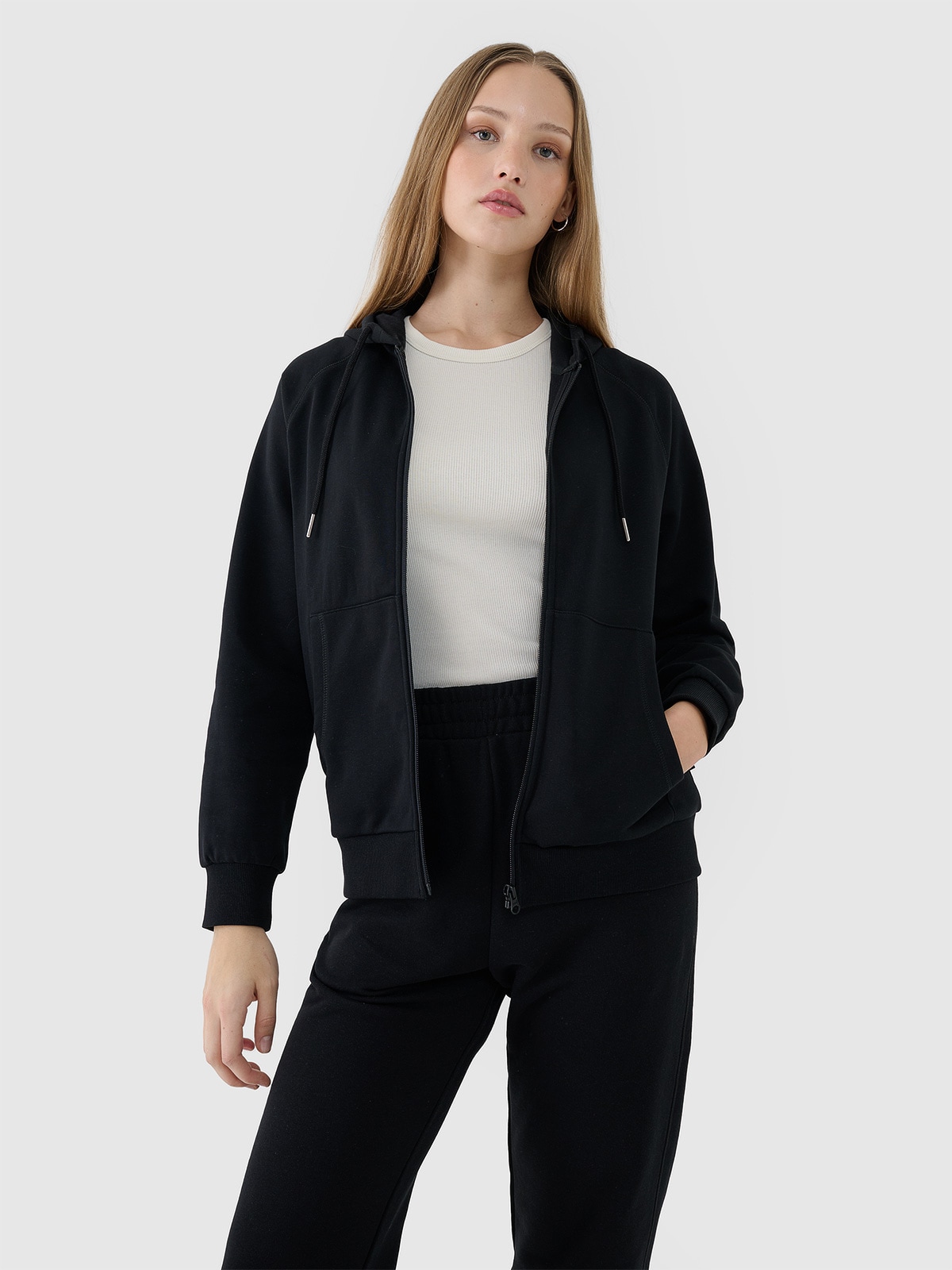 Женская спортивная куртка с капюшоном отлично подходит как для типа casual, так и для спортивного повседневного стиля. С кроем regular, который удобно приспосабливается к фигуре. Спортивная ткань French Terry с одной стороны гладкая, с другой видно петлевое переплетение. Женская спортивная куртка имеет большой вес 350 GSM, что делает ее толще на ощупь и особенно прочной, поэтому она сохранит свою форму многие сезоны. Женская спортивная куртка изготовлена на 80% хлопка, поэтому мягкая, прочная и приятная в прикосновении. Благодаря полиэфирной добавке (20%) материал сохраняет фасон и устойчив к износу даже на протяжении многих сезонов. Интегрированный капюшон к декольте с регулировкой шнура. Эластичные браслеты с тягачом. По бокам 2 открытых кармана. Застежка с односторонней главной молнией. Рукава раглана не ограничивают движения. Нижняя часть с широкой тягой.