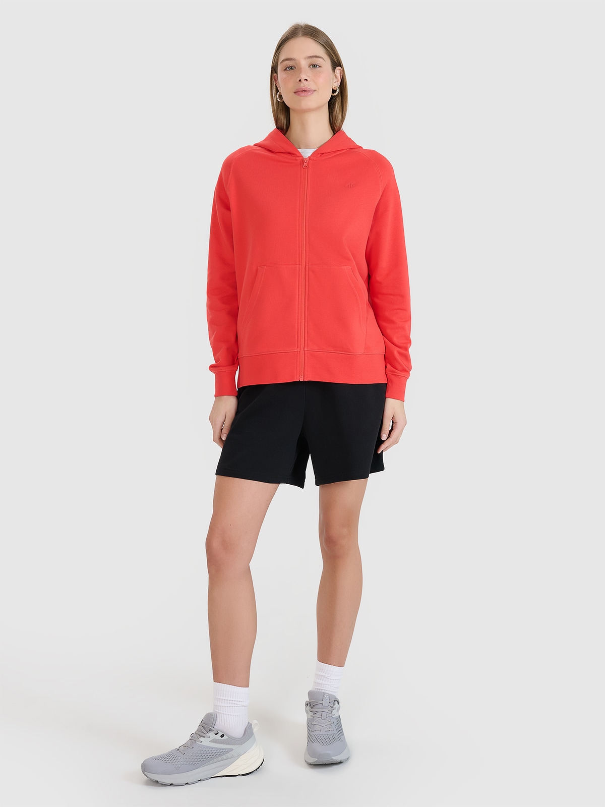 Женская спортивная куртка с капюшоном отлично подходит как для типа casual, так и для спортивного повседневного стиля. С фасоном pегуляр, который удобно адаптируется к фигуре. Спортивная ткань french terry с одной стороны гладкая, с другой видно петлевое переплетение. Ткань в этом плетении мягче, плавнее и тоньше на ощупь. Женская спортивная куртка характеризуется средним весом 300 gsm, что делает ее мягкой и воздушной.