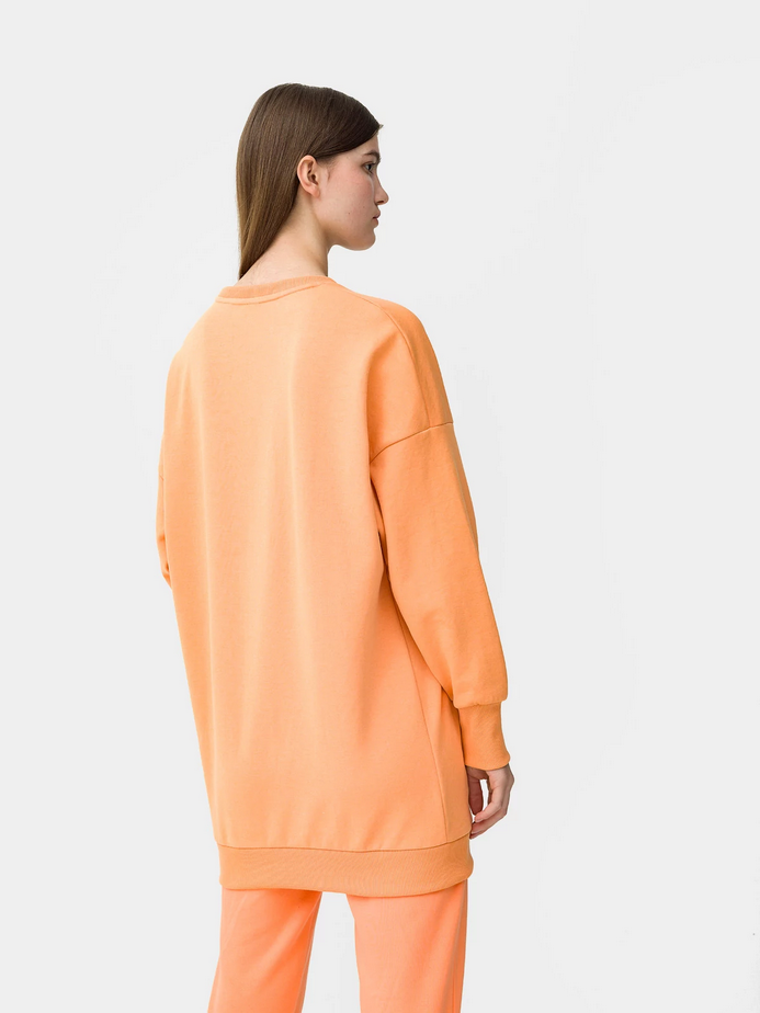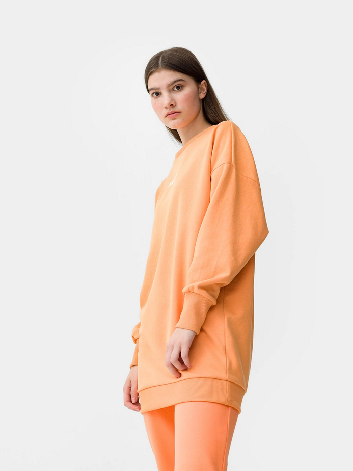 Женский спортивный свитер без капюшона из мягкой и не утепленной ткани с добавкой хлопка. Свободный крой и слегка приспущенные плечи обеспечат комфорт. Идеально подходит для повседневного использования.