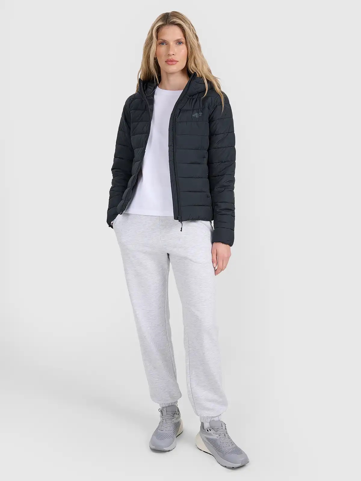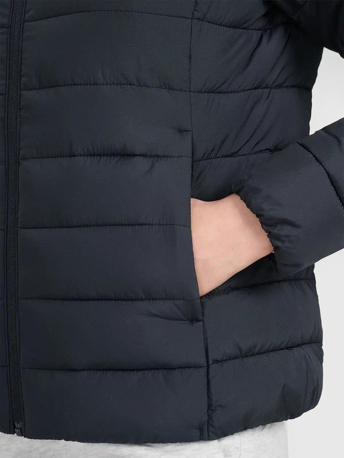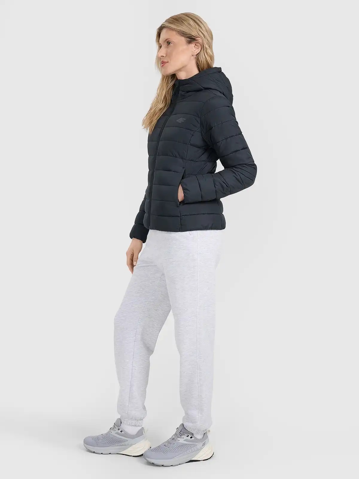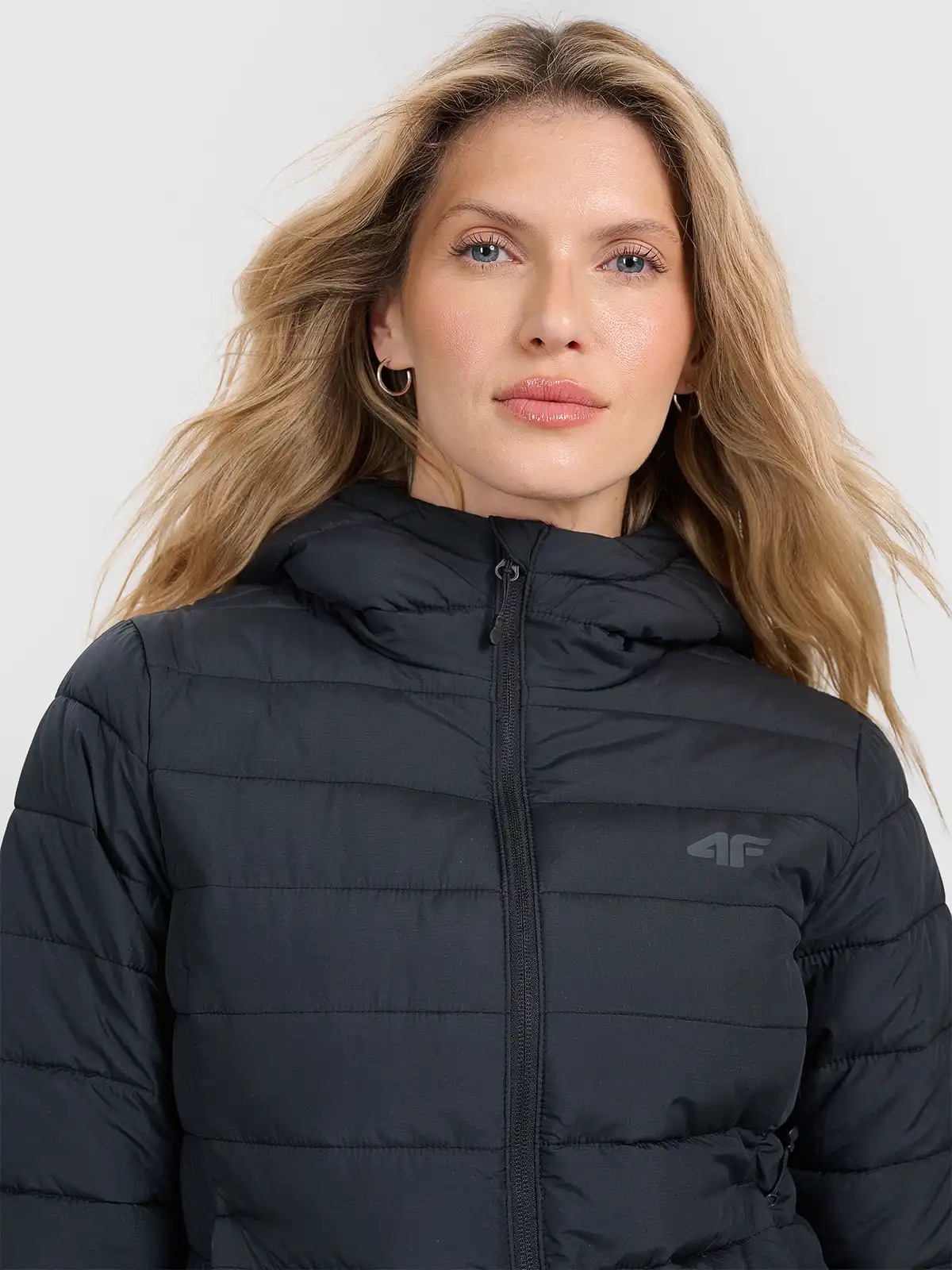 Sieviešu dūnu virsjaka 4F ar pildījumu no pārstrādātām sintētiskām dūnām, kas ir izturīgākas un vieglāk kopjamas nekā dabīgās dūnas. Pat saskarē ar mitrumu tas saglabā savas izolācijas īpašības ilgāku laiku un izžūst daudz ātrāk, turklāt neprasa sarežģītu mazgāšanas un žāvēšanas procesu. Ir viegli saliekama un uzglabājama. Jaku raksturo klasiska horizontālā stepēšana, kas sastāv no paralēlām svītrām, kas stiepjas pāri jakai. Šis stepēšanas veids nodrošina labu siltumizolāciju un atbilstošu jakas saspiežamību. To raksturo ķermenim pielāgots slim piegriezums un standarta garums līdz gurnu līnijai.